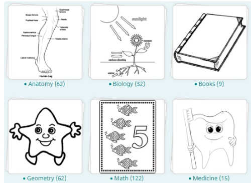 You can browse a number of categories available on the websites and then start downloading the PDF file of educational coloring pages. You can search for coloring pages like Days of the week, Alphabets, Geometry, Math, Physics, Telling time, and more.