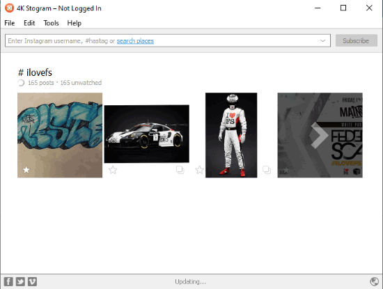 4K Stogram is a free software which lets you download Instagram posts by entering some hashtag or Instagram username. As soon as you start a search with the hashtag of your choice, it creates a folder with the same name in the folder where the application file of software is available. You can also set the output folder to download Instagram posts. It downloads the images, videos, and animated GIFs.