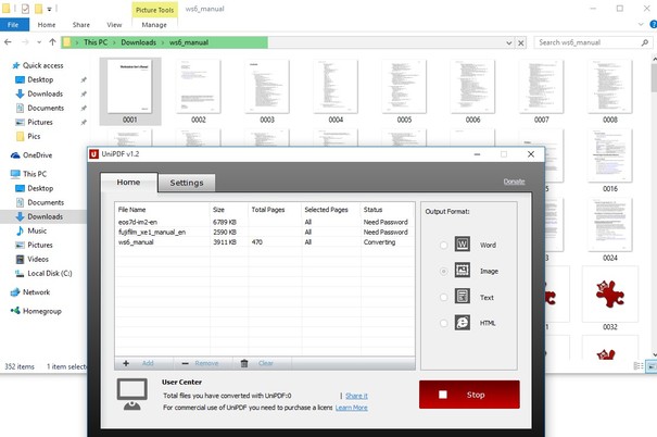 UniPDF is another batch PDF to image converter software for Windows 10 that’s easy to setup and it also supports several other popular formats as output. PDF documents that you plan on converting into images first have to be added to the conversion list by clicking on the “Add” button in the bottom left corner of the list.