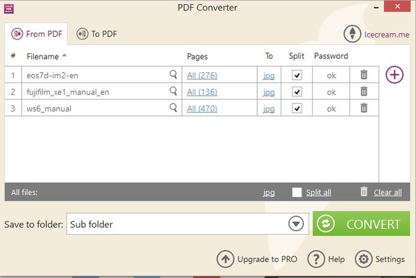 Icecream PDF Converter is a PDF to image converter software that’s very similar to UniPDF, but is bulkier and offers bidirectional conversion, to and from PDF. What I mean by bulkier is that the installer is close to 140MB and the installation close to 400MB in size.