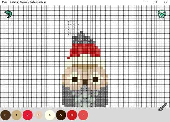 This app also gives you lots of patterns to color using the number technique. Most of the patterns in this app are Christmas theme based. Here also you will see numbers marked on cells in the pattern. Select the corresponding color from the bottom of the screen. As you can see in the screenshot above that the numbers with colors are given at the bottom of the screen. From here you can select the number you want to color. You can also use the paint brush icon to color multiple cells in a go. You can zoom in on the image to have a better coloring experience.