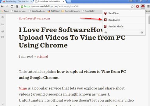 Readability by readability.com is more than just a website readability improvement extension. It’s also a “Read Later” type of extension, which can be used to save cleaned up versions of articles to your Readability.com account.