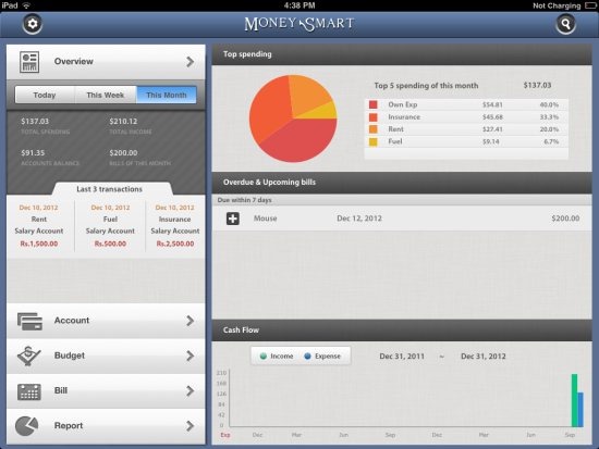 Money Smart HD Lite is a free iPad expense manager app to track all expenses and incomes on iPad. This iPad expense manager app lets you record all the expenses and incomes and then track all of them together to manage them in an efficient way on iPad.