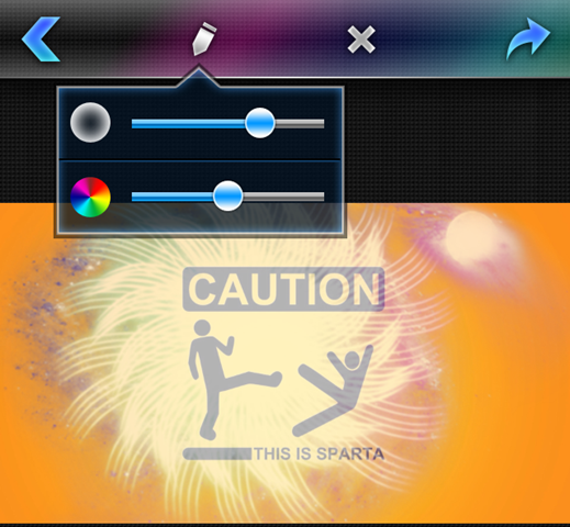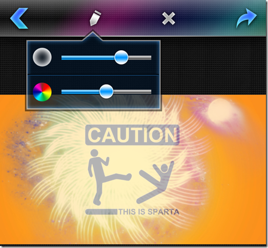 Once an effect is applied, you can drag it to place it anywhere on the photo. You can also pinch and zoom the effect to spread or shrink the effect. The app lets you vary the color combination and brush size too. You can vary it by tapping on the pencil icon at the top of screen. If you didn’t like any effect, then you can remove it from the area adjacent to plus (+) icon.