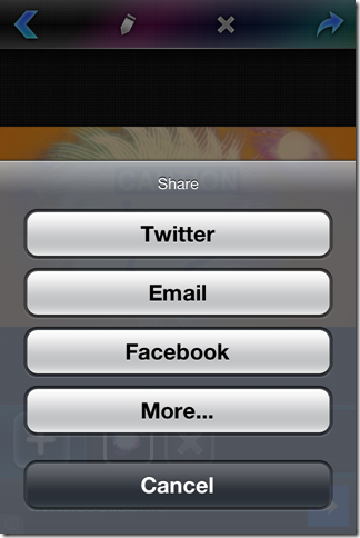 Finally, when you have completed the editing. You can share the photo with your friends via email, Facebook, Twitter etc. Tap on the icon at top right corner to use this feature.