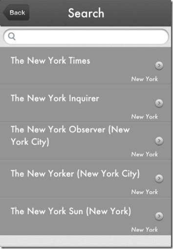The interface of the app looks as if you are really reading a newspaper. The app allows you to search newspapers with its name. Just enter the name of the newspaper and the app will show you that newspaper with the list of all the related newspapers. You can then select any one of them and then start reading it on your iPhone.