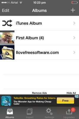 The albums option at the bottom left of the screen shows you all the current albums you have in the app at the moment. It also allows you to add a new folder to the app. While adding a new folder you get a option to password protect individual folders as well. So it is double security as the app is password protected and then you can password protect individual folders as well. The only drawback is that you can only create 2 folders with this free version of the app. For creating more folders you will have to upgrade to the paid version.