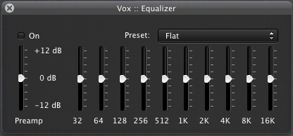 - Vox has a built-in 10 band equalizer as shown in the screen shot below.