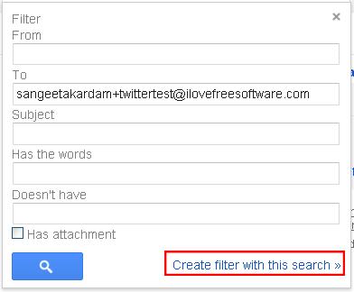 - Enter the Google mail address with alias (eg. “[email protected]”) in the “To” field and click on “Create filter with this search” link.