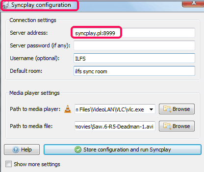 Step 4: Once you have completed above steps, simply tap on Store configuration and run Syncplay button. This will open the main window of Syncplay.