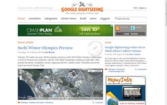 And apart from that, you can make comments, share articles, or even suggest noteworthy places on Google maps. The site also have a news section where it publish news on latest happening on Google Sightseeing.