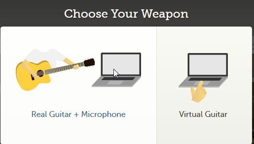 • Now, you will get the screen for choosing the guitar whether you want to use the real guitar and microphone or the virtual guitar.