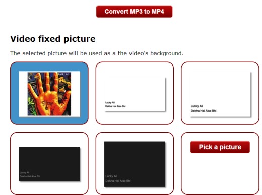 Any mp3 file that you want to convert into avi, flv, or in mp4 format can be converted easily using the MP3 to Video section. Just pick any mp3 file, and upload it to MP3Toolbox.net. After uploading it, you can select available pictures or can choose any desired one from your PC. Selected pic will be used as video background. After selecting a picture, you can hit the convert button and can convert mp3 in selected format.
