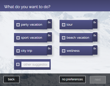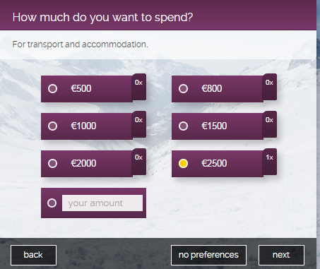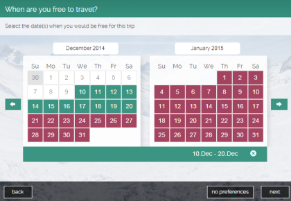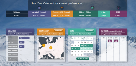 While planning, the website lets you suggest (vote for) place (s) you want to visit, type of trip you are interested in, time frame (in terms of exact dates) in which you want to go for trip, number of days you want to spend in the trip, and finally the amount of money you are ready to spend for transportation and lodging.