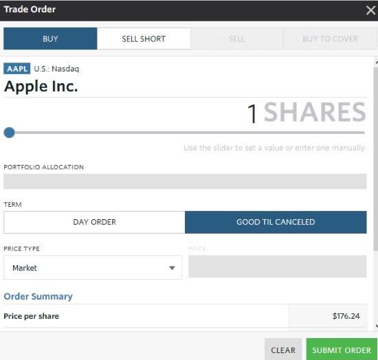 On this screen you can choose the number of shares you want to buy by moving the slider given at the top of the window. Select price type, term, etc. and submit order to process it. After you buy the stocks of your choice, they will reflect in your portfolio. Depending on the gain and loss in your overall portfolio, you will be ranked on the leaderboards. As you can see my rank is 3 in the below screenshot with the days trading data.