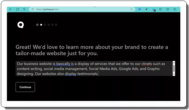 - In the next step, you can define what you want on your website. Just specify the elements and sections that you want on your website. Include as much details as you can for AI to generate those things accordingly.