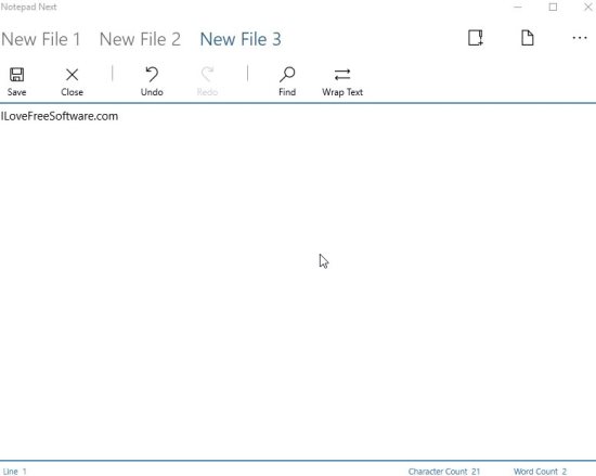 Here you can see the interface of this notepad. It has few options which are pretty basic like save, close, find, undo, etc.