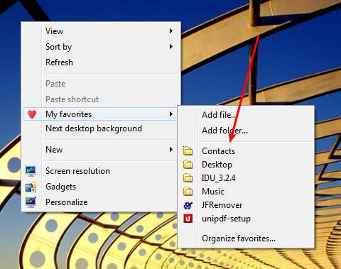 • Create a favorites option in the right-click context menu.