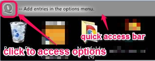You first need to download and install this freeware on your PC. You can use the download link available at the end of this review. After installing it on your PC, you can activate it from start menu. A bar will be available on top of your desktop screen, like visible in screenshot below. This bar is not useful until you add some applications on it. For this, you need to access Options of Quick Access Bar.