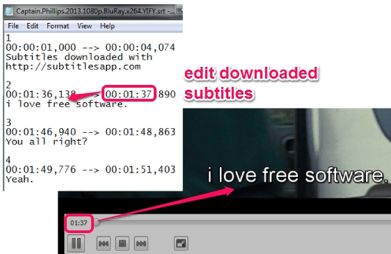 - One of the best part is that you can edit subtitles file, just using Windows Notepad. And, subtitles file can be loaded to any supported media player with edited subtitles. Screenshot below clearly shows edited subtitles at a particular time: