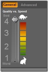 - Select the “Rendering Quality” on the scale.