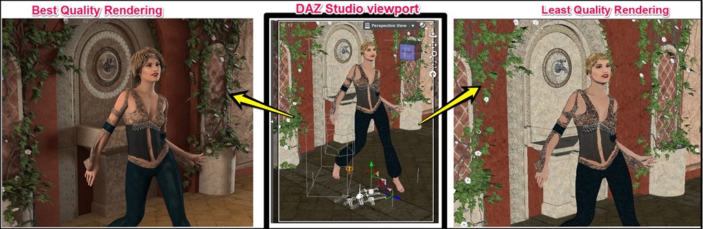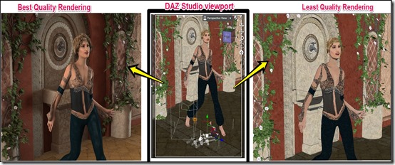 Process of developing output file from the computer animation is called rendering. Rendering will take more time for better quality output. DAZ Studio uses a Quality vs. Speed scale to control the quality of rendering (see the screenshot below).
