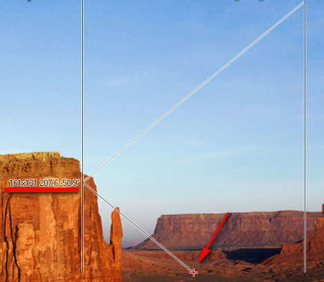 On the image above, the start point is the one being indicated with the red arrow, it’s in the shape of an plus sign. When you start moving your mouse around, start point will remain anchored while the rest of the measuring construction is gonna move around, and the numbers which are underlined above are gonna change their value. Reading the numbers is also something important that you need to know.