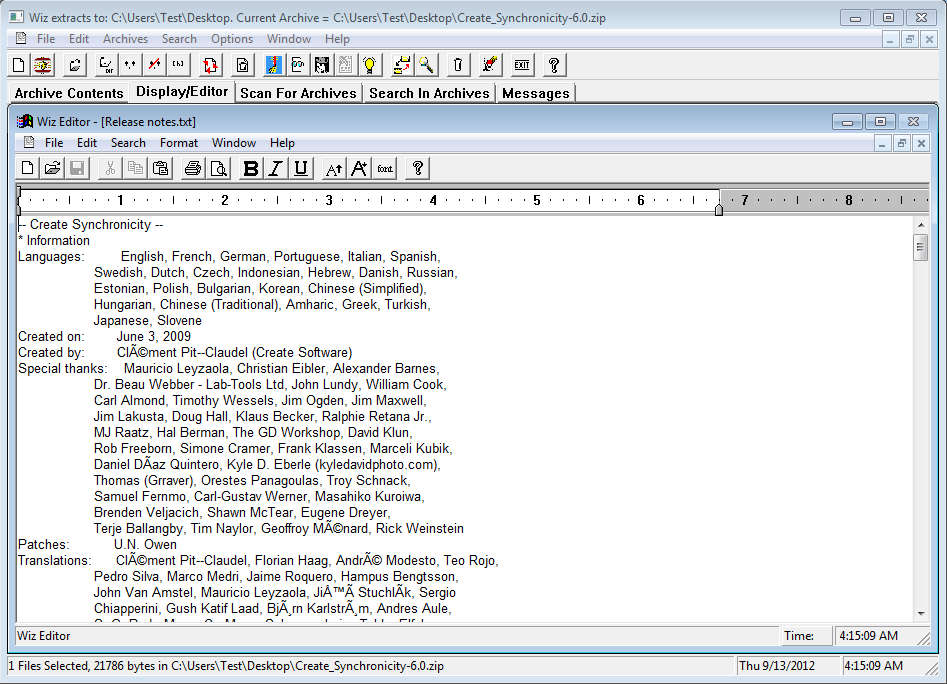 That should open up the in-built text editor which even has some formatting tools available, see image above. There you can apply quick edits without having to extract the archive and open up the files like that. By opening up the Search in Archives tab you’ll be able to look up files stored inside the archive easily. By clicking on the Archive option in the main dropdown menu and selecting the Complete archive information, you’ll be presented with size, attributes and comments that the archive has. To create an archive open up File >> Create archive and follow the wizard.