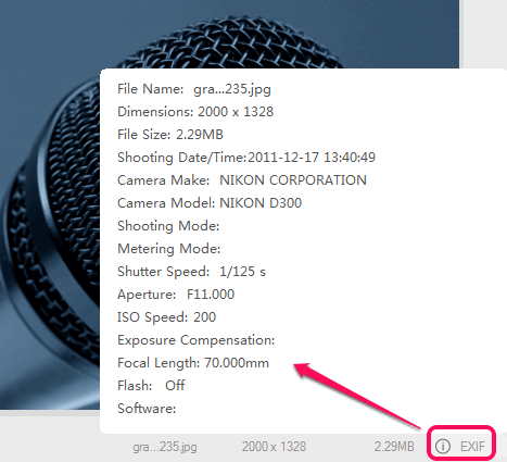 - It also lets you view Exif information of your photo (if available) in a single click.