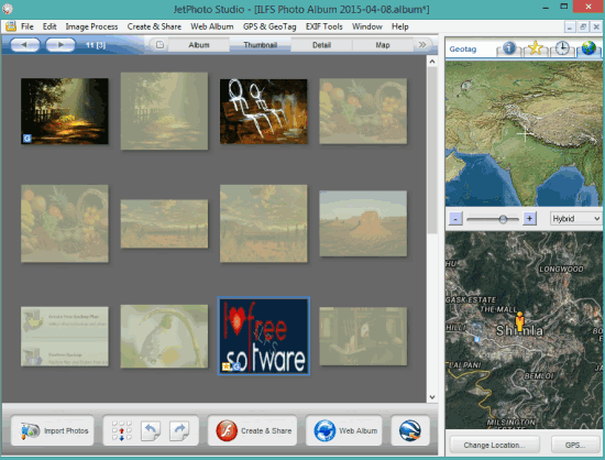 JetPhoto Studio is also a good Picasa alternative. Unique feature available in this photo organizer and editor is that you can tag photos on map. So if you want to add a particular geographic location with any photo, it can be done easily. Apart from this, it lets you create custom albums and add photos to those albums. For every single photo, you can add keywords (say tags), mark it as star, and see the creation date of photos.