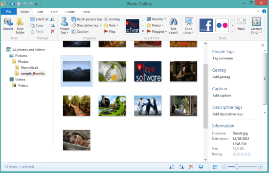 Windows Live Photo Gallery is surely a best Picasa alternative. It is an all in one solution to manage your pictures, edit them, and upload them to Facebook, Flickr, OneDrive, Vimeo, etc. You can add tags to images, give rating, add person, set Geo location, add caption to images, and more. Moreover, you can also sort your images by date, tag, person, rating, and Geotag.