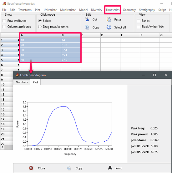 PAST, acronym for “PAleontological STatistics” is a free scientific, paleontological, and statistical analysis software for Windows. The software comes with lots of powerful features for data manipulation, plotting, dealing with the univariate, multivariate statistics, ecological analysis, time series analysis, spatial analysis, and many others. PAST comes with a spreadsheet like interface in which you enter your data. And you can also export the spreadsheet as an Excel file.