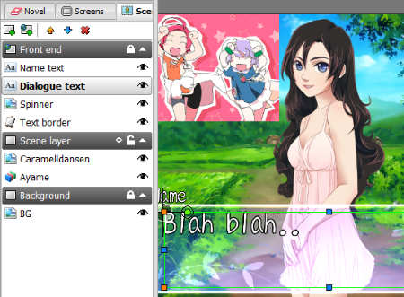 Here, you can customize the novel. The property inspector enables you to move the camera and other camera settings. You can target the scene layer, front end, background or the entire scene.