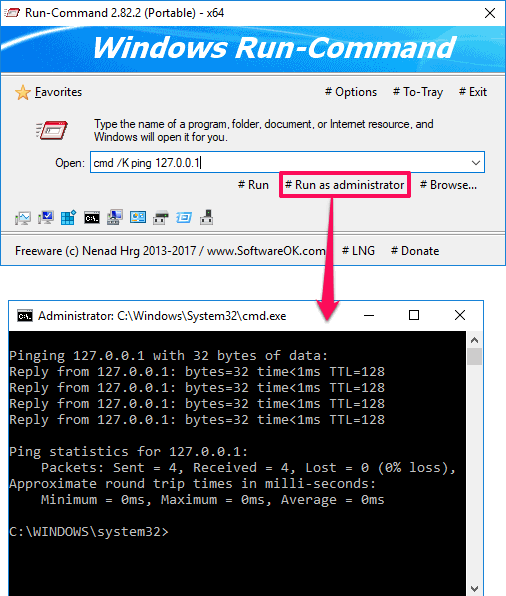 Run-Command is a free Windows Run dialog alternative to run programs as administrator. This software acts as a complete replacement for Windows’s default Run dialog. It lets you run CMD commands, launch programs, launch website URLs right from the Run box. And you can bookmark your commands or program names in it. It is a multilingual software which has an interface very similar to traditional Run dialog with some enhancements. The software lets you open command prompt with the command you want to run and that to in normal as well as with administrator rights.