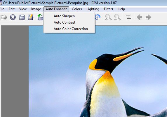 CIM is available for Linux and Windows. Version for Windows is portable, while the one for Linux will have to be compiled from source. Better part of the interface takes up the image previewer down below. Program works in fullscreen mode all the time and you cannot minimize it. Top left corner has the usual standard menu and quick access toolbar combo, while down below, under the image preview section, you can see info about the image.