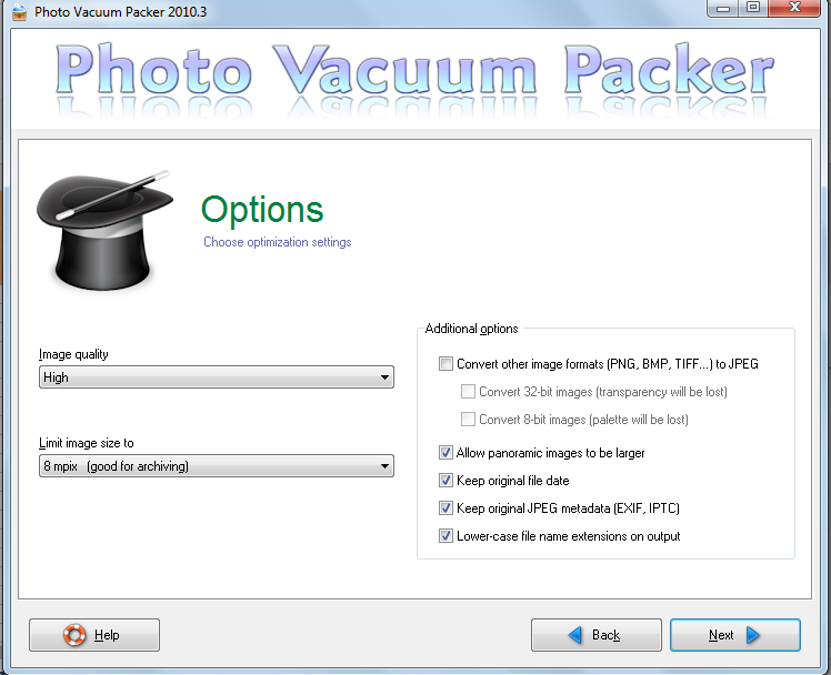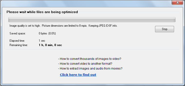 Photo Vacuum Packer is powerful, free photo optimizer which creates optimized copies of all your photographs. By using this tool you would ensure that the optimized photos on your disk would use almost 50% less space compared to the space they consumed before. However, the software does not have any impact on the dimensions or the quality of your photos. You can also think of this software as a free photo compressor. The method behind optimizing your photos which this tool adheres by is optimization of images and has them written in a separate folder. The fact that the tool is available for free and contains no adware, spyware or any disturbing toolbars makes this software a good product for its users.