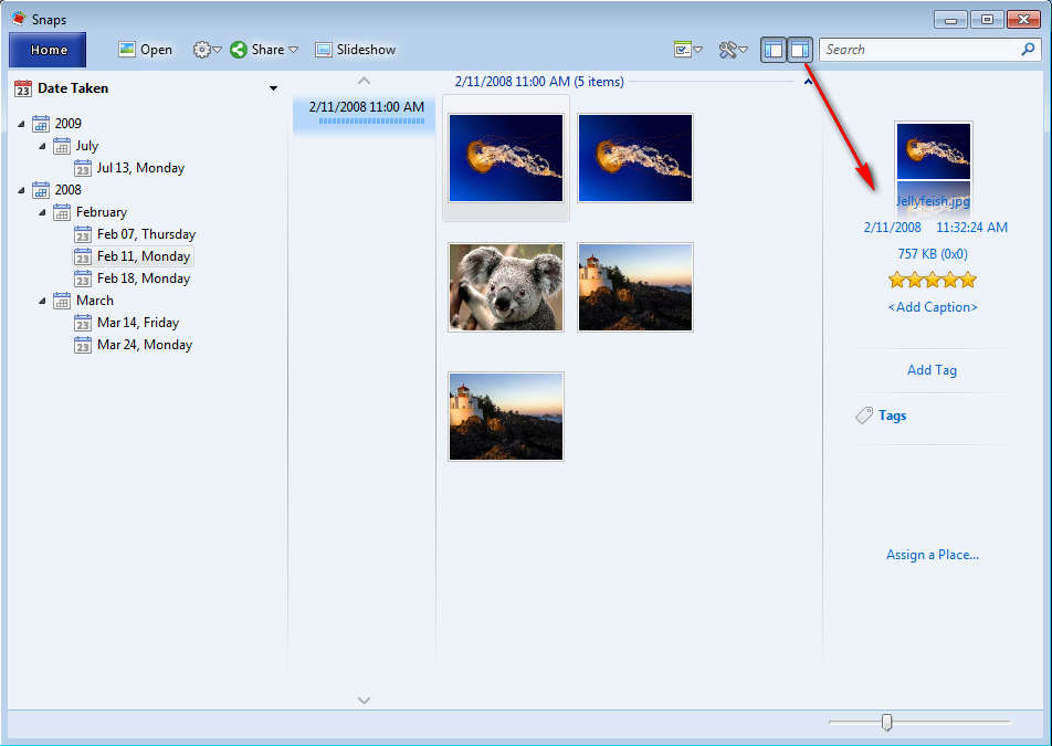 There next to adding Geotaggs, you can also add regular Tags used during search. Images can also be rated and on top of all that you can also give them special captions. Both files and videos can be viewed from inside Snaps, you just have to double click on them.