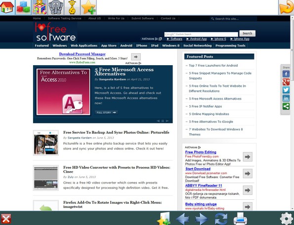 Screenshot below shows us the entire interface of this free parental control web browser. As you can see, it doesn’t really look like a classic web browser interface. For instance there’s no address bar. You can only see several icons in the toolbar at the top.