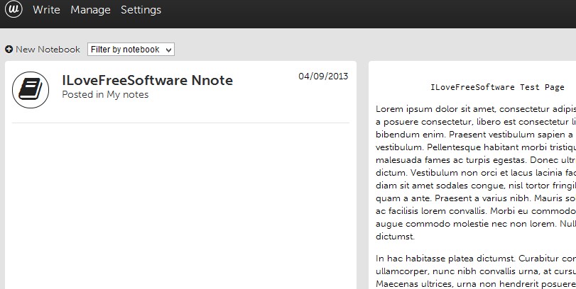 Text that you write can of course be saved online to your account. Documents are called notes. My Notes drop down menu is for selecting a notebook. With the help of notebooks it’s more easier for you to group notes, by having one notebook for work and another for private documents. Key features of Write App – free online fullscreen text editor are: