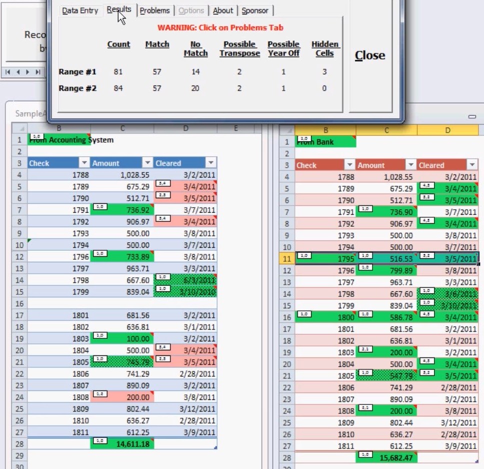 How to compare data from two different Excel spreadsheets with Reconciliation on Fire