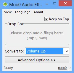 Interface of Moo0 Audio Effect is certainly one of the more interesting ones when it comes to sound effect software. Normally you’d expect to see toolbars, perhaps even a waveform editor. Convert to drop down menu holds all the effects and audio transformations that are available.