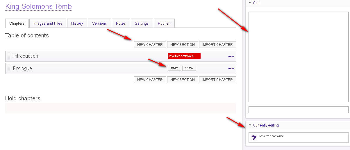 There you have it, a book is started, and if you want you can invite your friends to come and join you on the project. Each one of your friends can be assigned to a certain chapter or one can write, while the other one proofreads and lays out the story. There’s a chat on the right next to the text input area so you can communicate with other members of your team in real time and give feedback to one another. Booktype is a great tool indeed, visit the main website for more information.