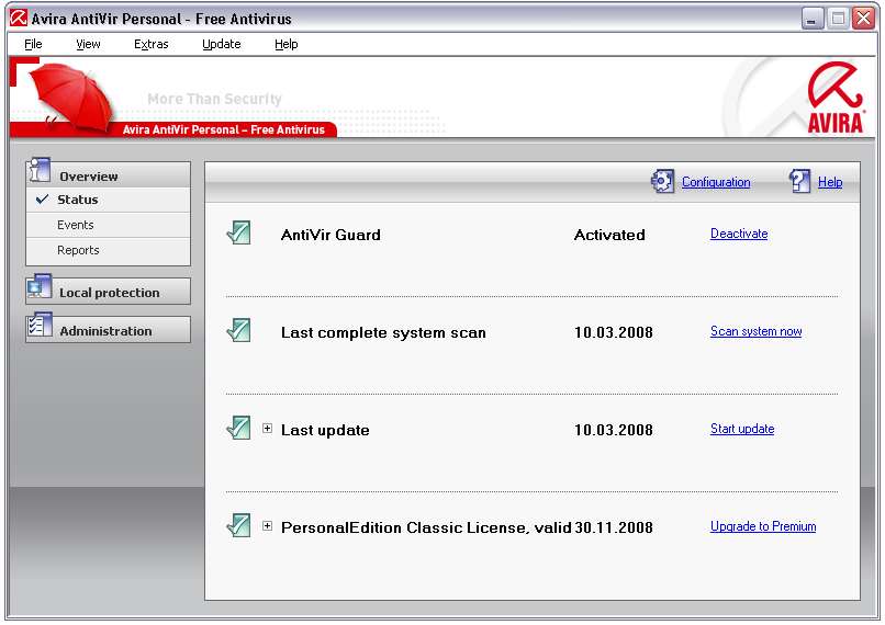 Avira AntiVir Personal Free Antivirus is a comprehensive, easy to use antivirus program, designed to offer reliable virus protection to home-users. It protects your computer against dangerous viruses, worms, Trojans and costly dialers. It also includes a basic Anti-Spyware. And it offers all this completely free of charge.