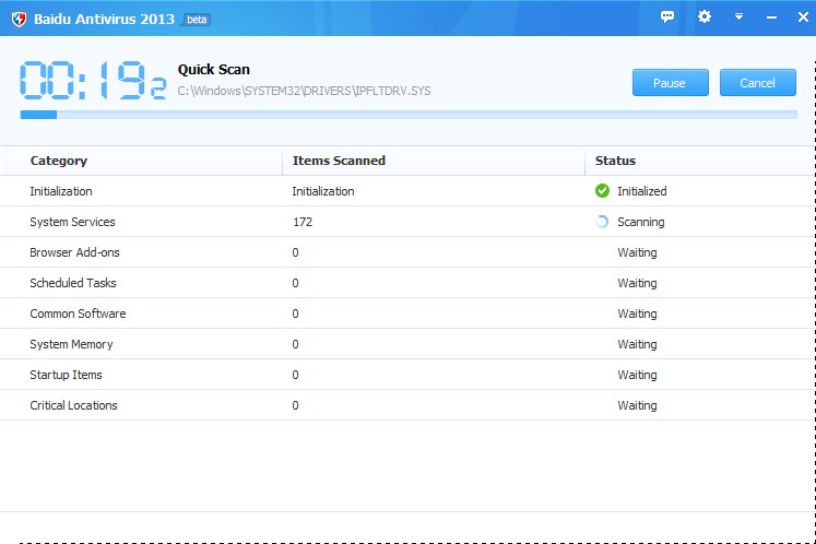 Baidu Antivirus quick scan
