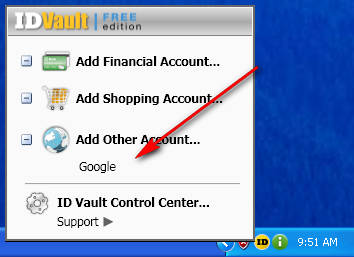 Click on the Add Now option, you won’t get pretty much any kind of notification that the account was successfully added, but if you click on the tray icon of ID Vault it should be there: