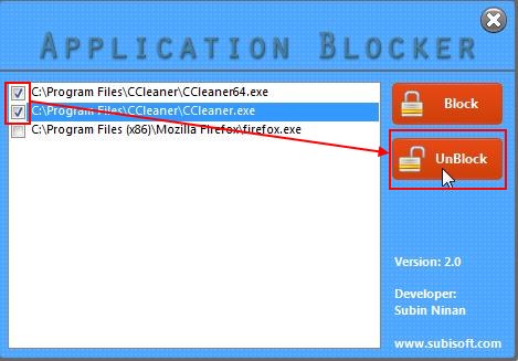 To unblock the blocked applications, you just need to run Application Blocker once again, select the desired applications from the list, and click on the “Unblock” button.