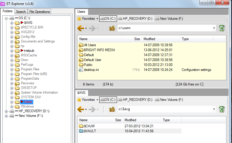 At the right panel you have the names of the drives and favorite tab at the header. Once you click on the name of the drive you will be presented with all the files in the drive. It makes the process of searching the folders and files much easier and if you have used the windows explorer before then you will not face any hurdles in using ET Explorer software.