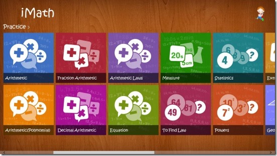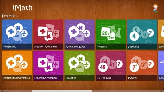 iMath is a free Windows 8 education app. It is a Windows 8 math learning app, designed to help children under 12 to practice math and improve their math skills. Since it is an app made specially for children, so the app makes use of very good cute graphics, colors and fonts. You can help your younger ones learn simple Arithmetic, Fractional Arithmetic, Arithmetic Laws, Polynomial Arithmetic, Decimal Arithmetic, Metric and Measure, Statistics, Extractions, Powers, Geometry, Equations etc. Plus the app also lets younger ones to test their math skills, along with playing 4 different math games.
