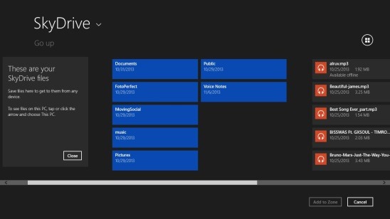 The app shows all the files and folders present in your Windows 8 devices during uploading, and uploads them all in the cloud. A good feature about uploading files in this Windows 8 official Norton Zone app is you can select multiple-upload files together and keep doing other stuff in the app, for example: browsing in another folder, deleting files, downloading files, viewing photos within the app, or adding comment on file etc. And one of the biggest plus point of this Windows 8 official Norton Zone app is, you can directly upload files from SkyDrive into Norton Zone Cloud.