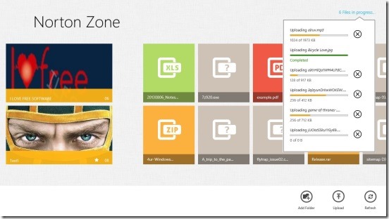 Upload, manage, and share files using this Windows 8 official Norton Zone app: